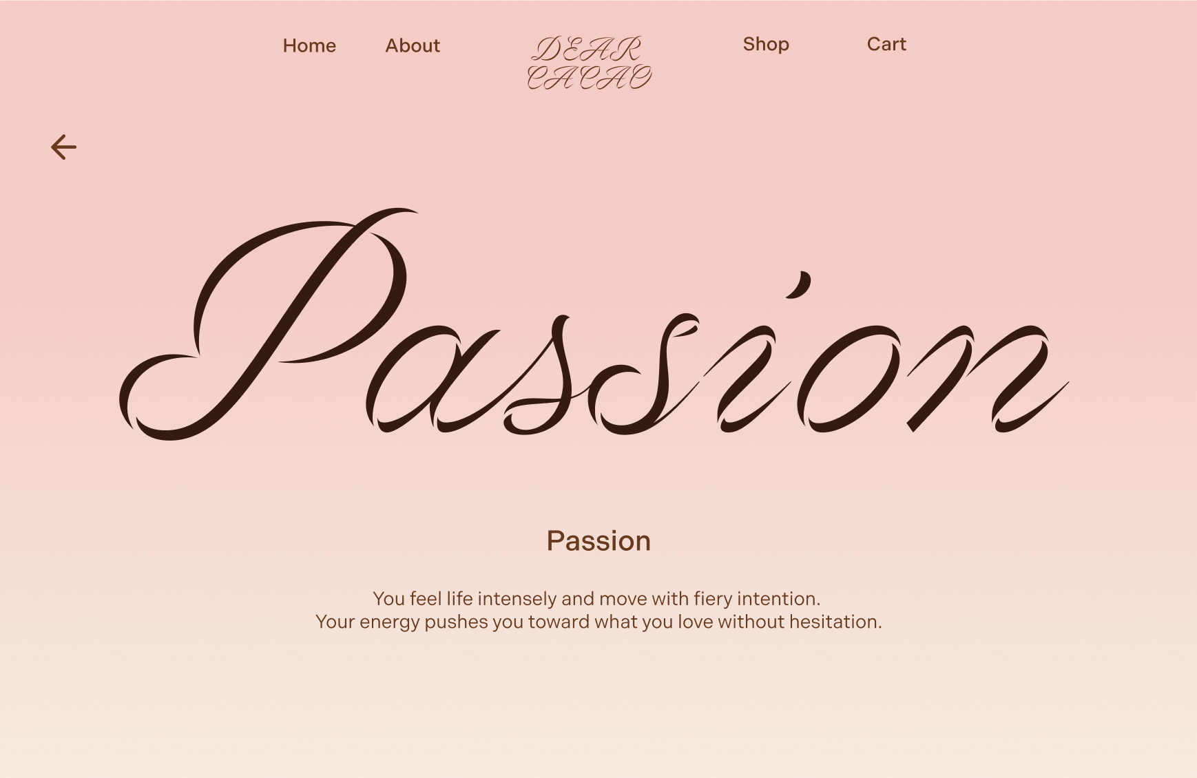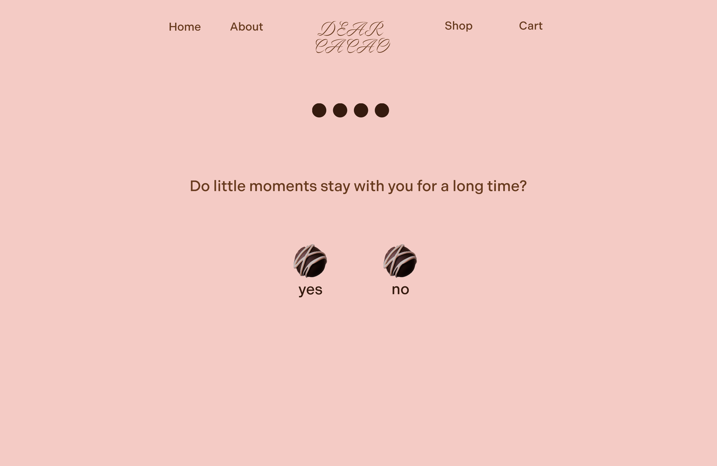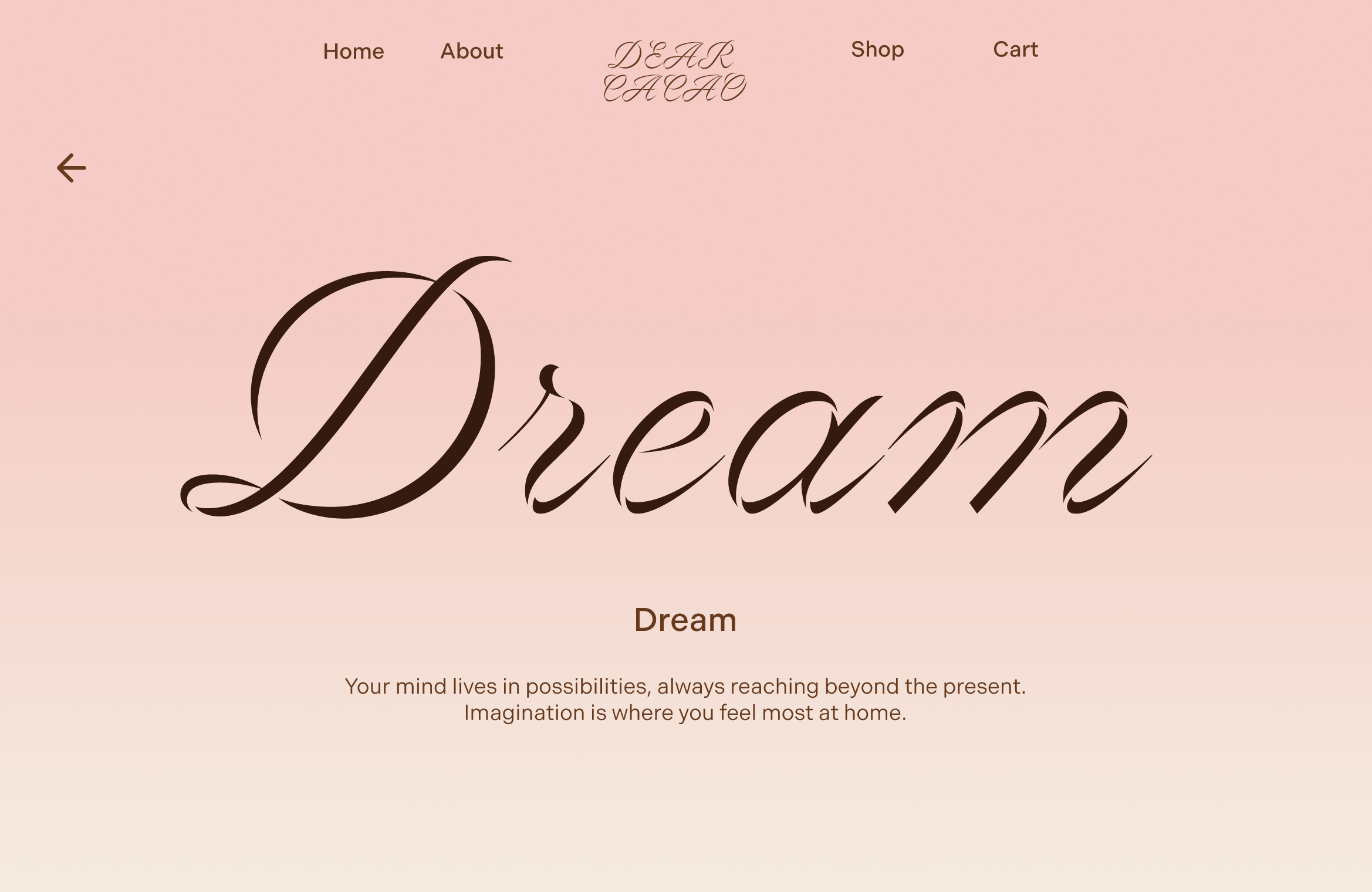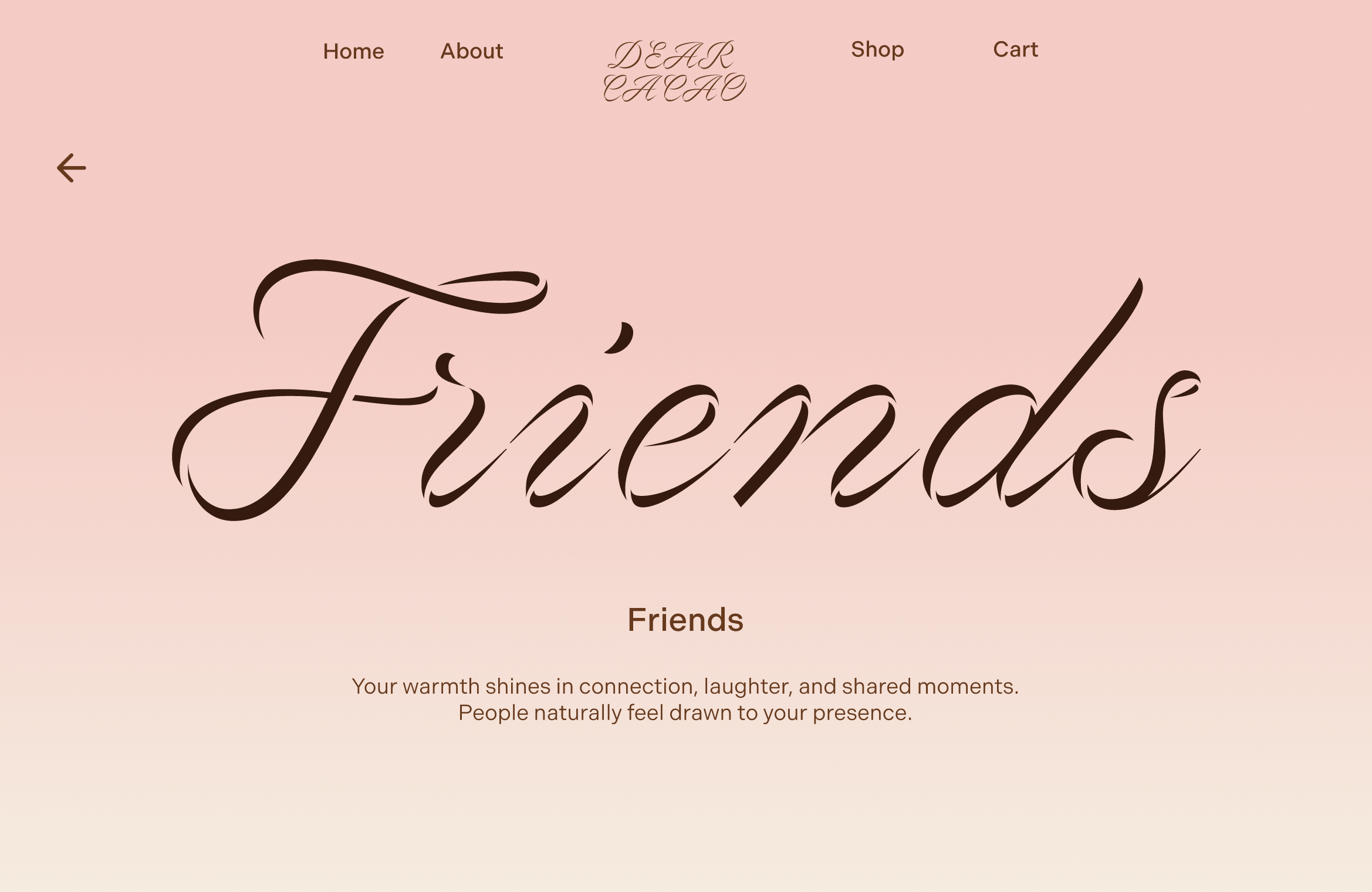 At Dear Cacao, instead of choosing flavors, users select emotions and meaningful moments, creating an intimate experience for both giver and receiver. The project extends across a cohesive brand system, including a website, app, packaging, a journal-style booklet, and seasonal items (calendar and tree ornament).